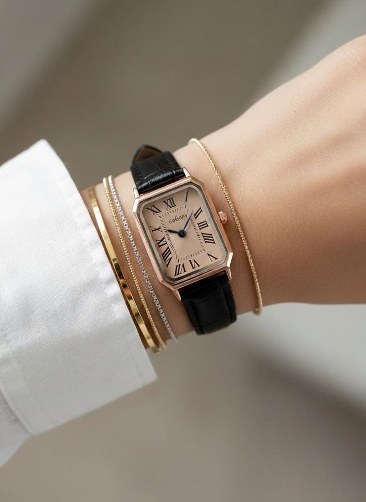 Montre élégante avec bracelet en cuir. Cadran minimaliste. Parfaite pour toute occasion.